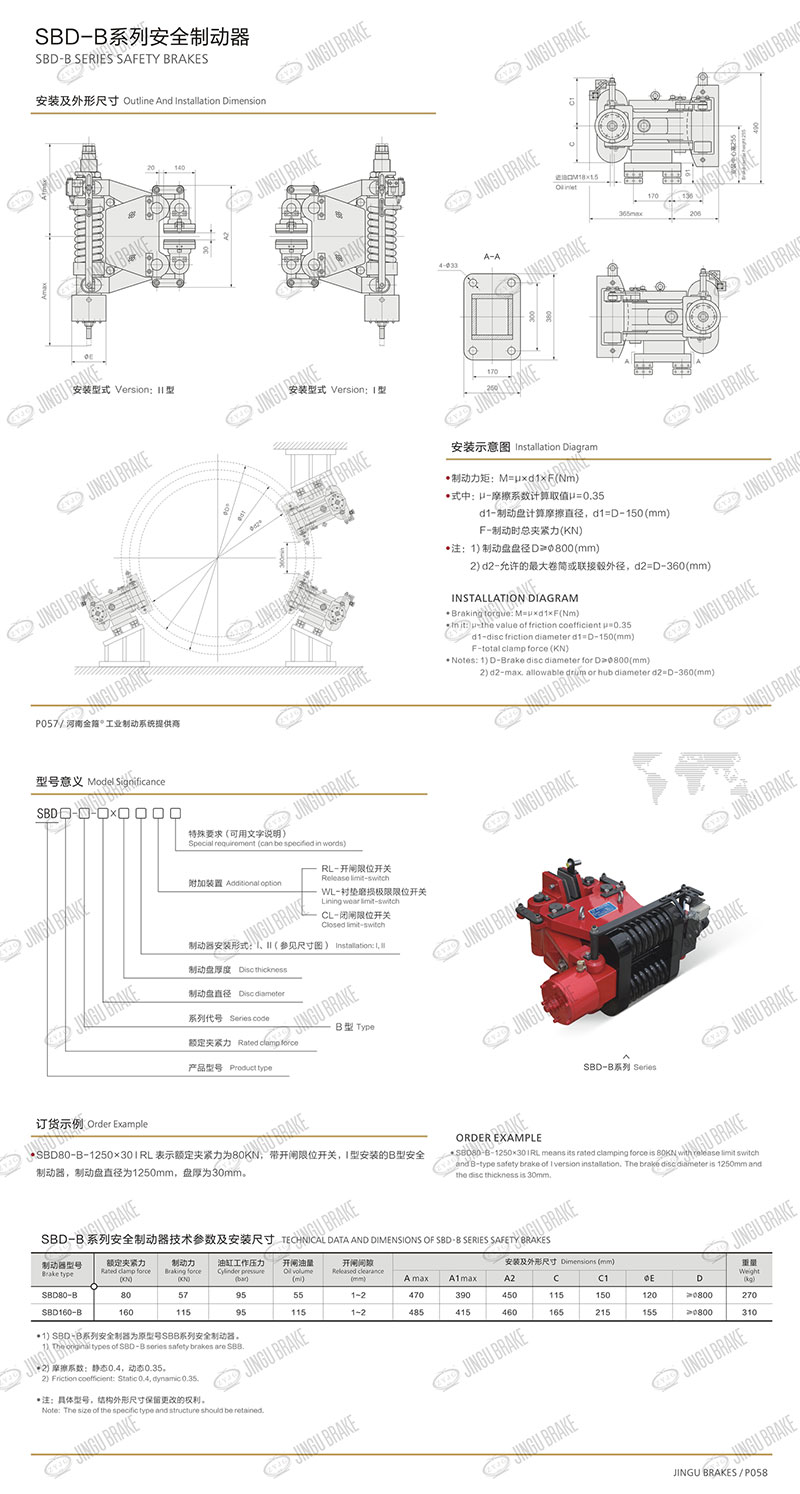 產品簡介:液壓安(ān)全(緊急)製動器,是一(yī)種使用在低速軸(卷筒軸).上的大功率製(zhì)動裝(zhuāng)置,可廣泛用於大中型起重機、港口(kǒu)裝卸機械起升以及臂架俯仰機構低速軸的緊急安全製動,礦用卷揚機、提升機和大功率傾角式皮(pí)帶運輸機的工作製動(dòng)和緊急安全製動,纜車和索纜起重機驅動機構的安全製動,鑄造起重(chóng)機等特種起重機起升機構低速軸的安全(緊急)製動。