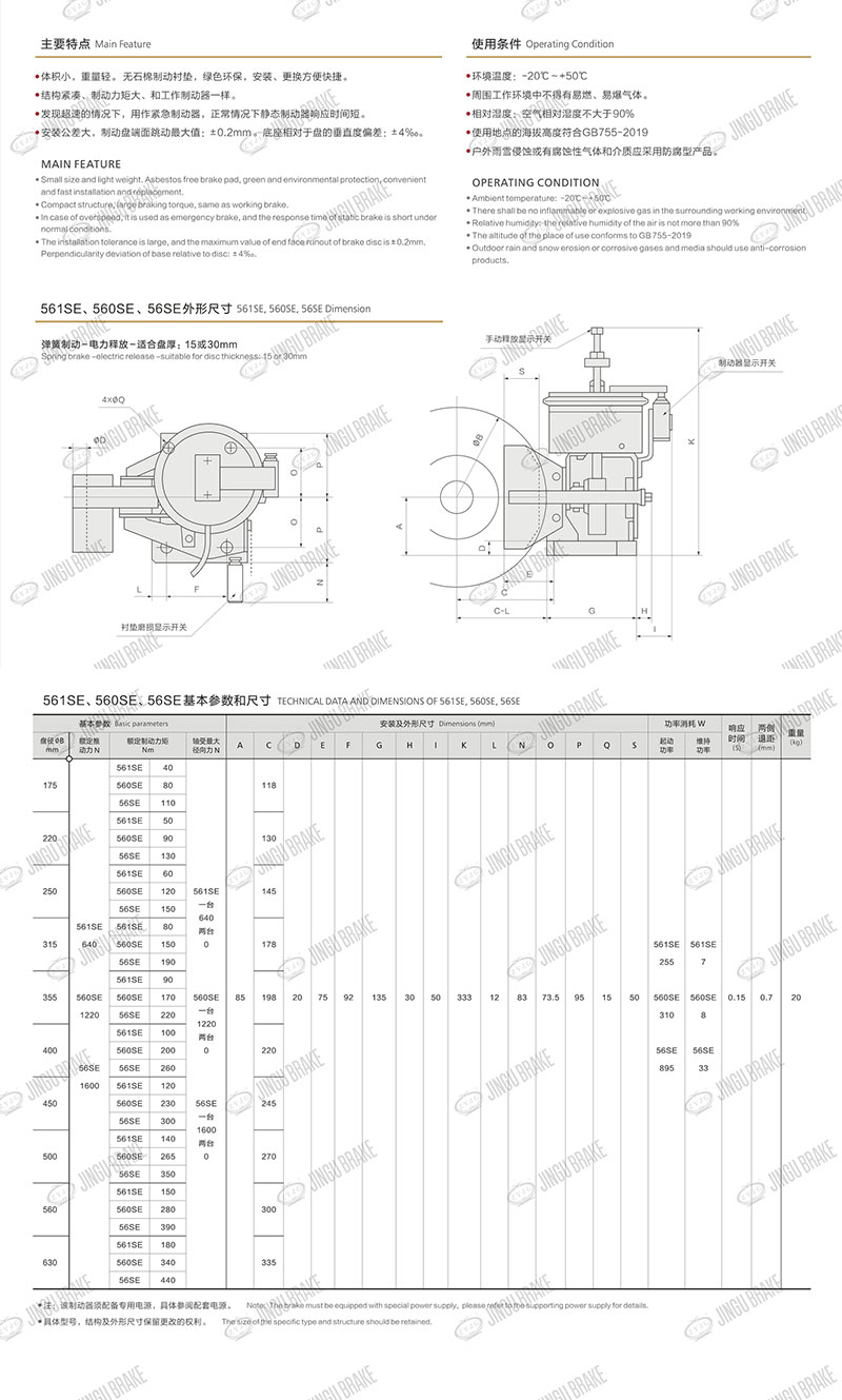 產品簡介:SE係列電磁失效保護盤式(shì)製動器與鼓式製動器(qì)相比,具有(yǒu)結構緊湊、製動力大。安裝方便等優點(diǎn),它主要適用於起重。運輸。冶金。礦山。港(gǎng)口、建築機械。電纜。吊索設備。力發電機、紡織機械等(děng)各行業的多種機械驅動配套的機械製動或(huò)減速。